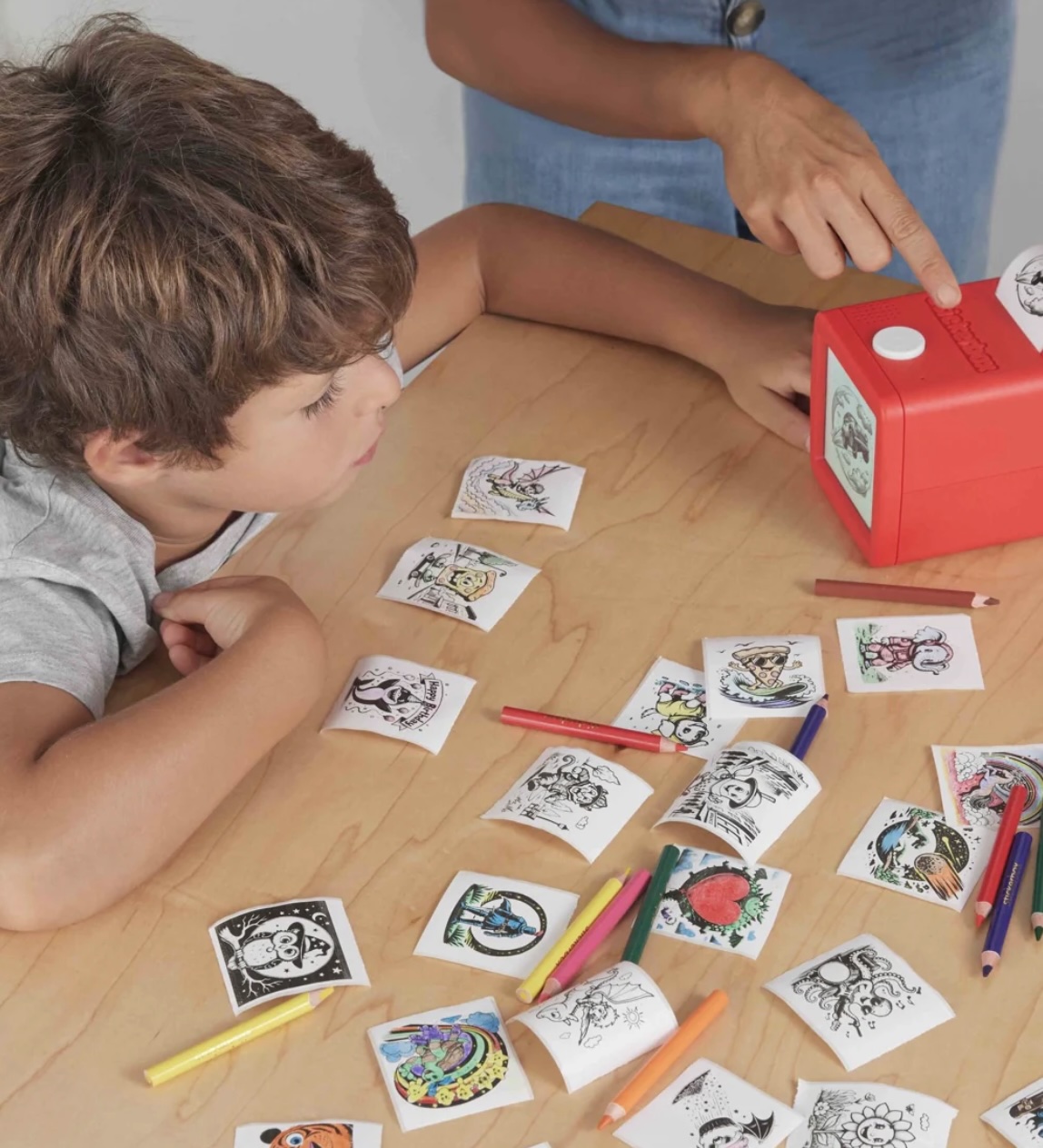 Portable thermal printer that uses generative AI to create pixel-art stickers from voice prompts instantly.